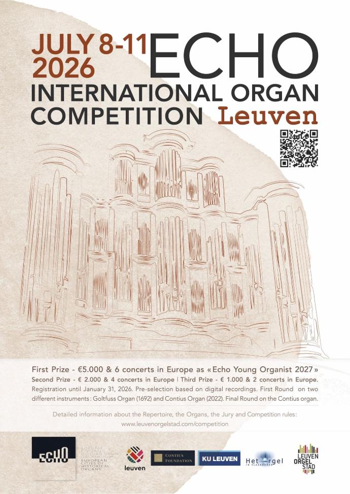 The winner will receive a €5,000 prize, generously offered by ECHO, as well as the prestigious title ECHO Young Organist of the Year 2027.