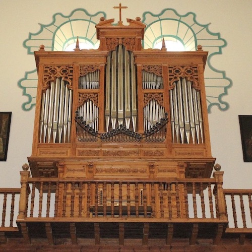The organ of the church of Nuestro Salvador is an instrument built in 2001 by the local organ builder Francisco Alonso Suárez. It is an organ with a baroque aesthetic, with two keyboards and a complete pedal board, conceived to allow the performance of the repertoire of the different European schools from the 16th to the 18th centuries, as well as part of the non-symphonic romantic repertoire and contemporary music. This instrument came to replace the absence of the two organs that the ancient Collegiate had, facing each other laterally in the choir. The larger of the two was moved in 1770 to the current church of Santos Justo y Pastor, where it is still today, while the other, smaller, perished in the pre-Civil War firing of churches in March 1936. The carved wooden case of the new organ is inspired by the layout of the design by Gaspar Fernández de Prado in 1619 for the organ of Santa María de la Alhambra church.